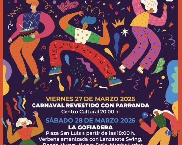 Y queda la mañana y parte de la tarde del sábado 28 para recargar pilas y participar de La Gofiadera en la plaza del pueblo, programada a las 18:00 horas, un encuentro verbena amenizado por los grupos musicales Lanzarote Swing, Banda Nueva, Nueva Stela y Rika Banda. El concejal de Festejos de Yaiza, Daniel Medina, invita a la población de Lanzarote a sumarse a estos dos días carnavaleros en Las Breñas.