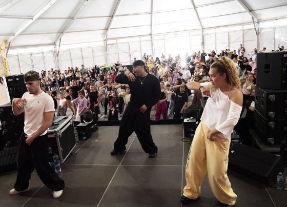La juventud de Teguise llena la carpa de La Villa en una exitosa master class de baile del “Buenas Noches Tour”
